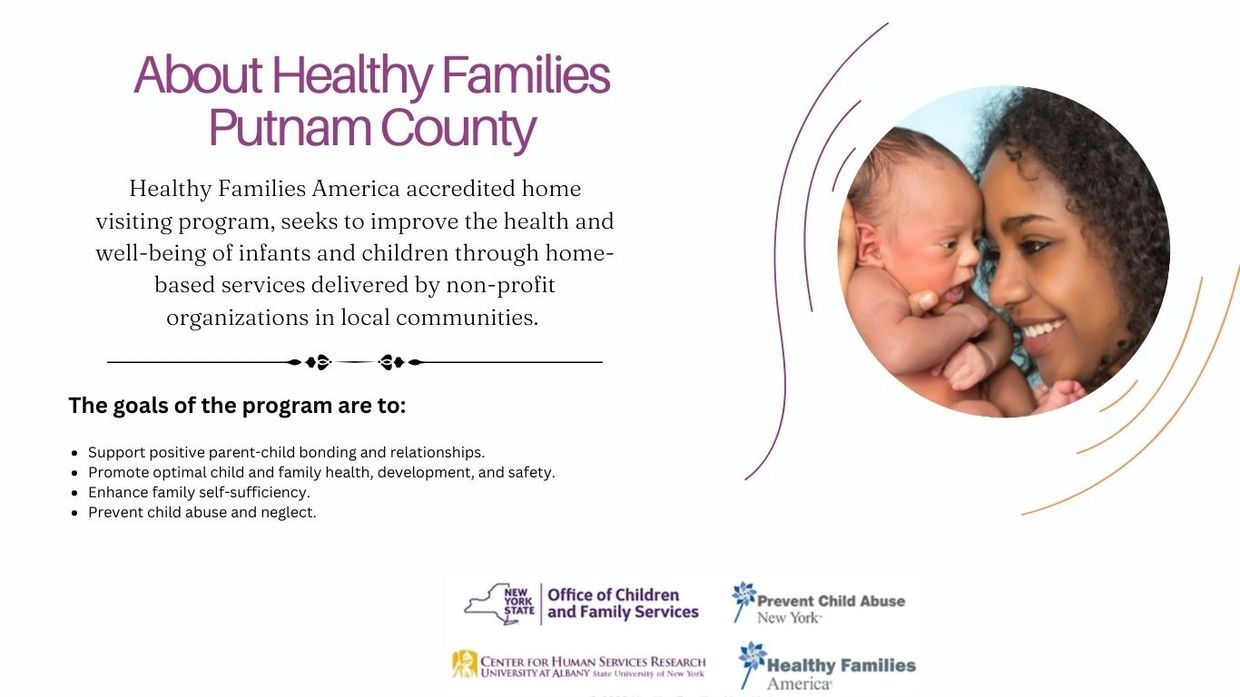 Healthy Families America accredited home visiting program, seeks to improve the health and well-being of infants and children through home-based services delivered by non-profit organizations in local communities.